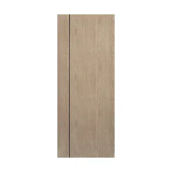ประตู uPVC ภายใน Polywood บานทึบ-เซาะร่องดำตั้ง 1 เส้น PM-1 สีเกรย์โอ๊ค ผิวลายเสี้ยนไม้